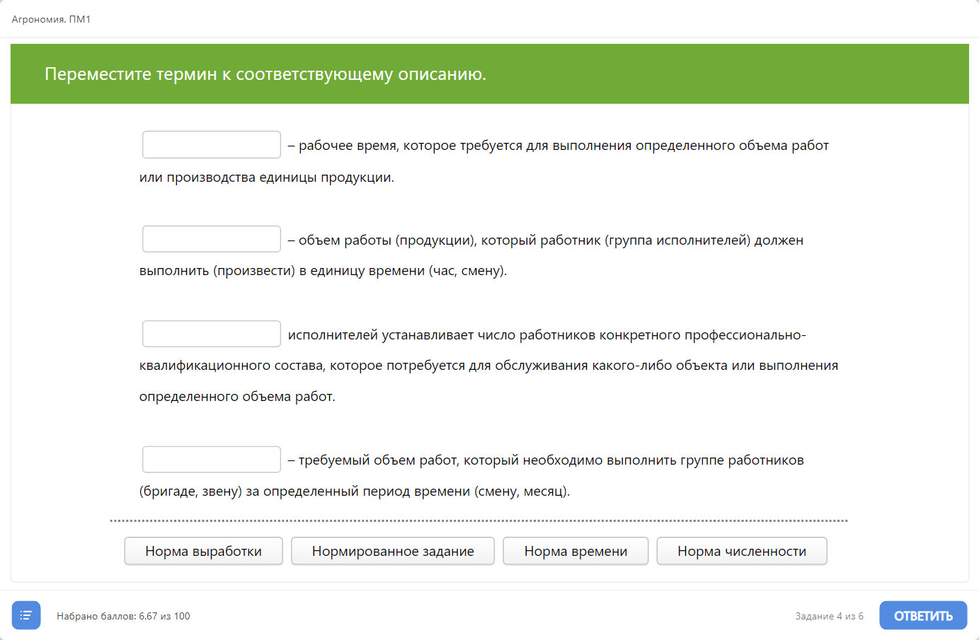 Агрономия. ПМ1. Организация работы растениеводческих бригад в соответствии с технологическими картами возделывания сельскохозяйственных культур