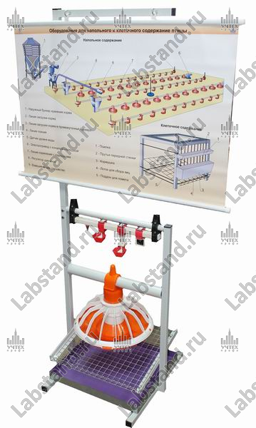 Назначение: Стенд-планшет предназначен для изучения устройства и принципов функционирования составных элементов оборудования для напольного и клеточного содержания птицы.