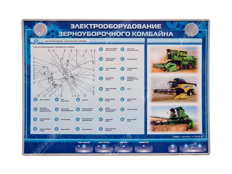 Интерактивный стенд предназначен для получения знаний об электрооборудовании зерноуборочного комбайна.