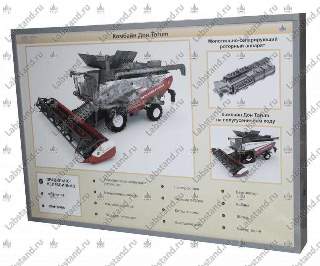 Назначение: Стенд-планшет предназначен для изучения принципа действия приборов и составных элементов комбайна Дон Torum в учебном курсе «Уборочные машины».