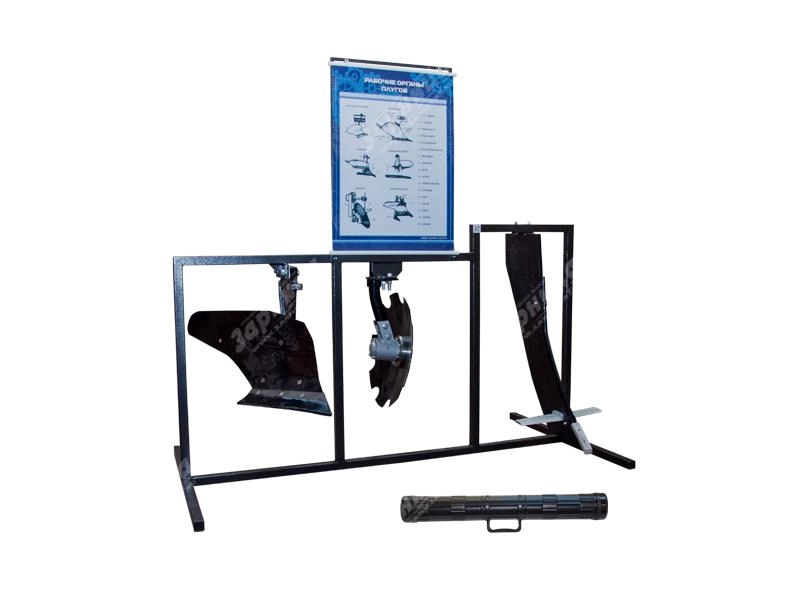 Стенд-планшет представляет собой рабочие органы плугов, на стационарном основании, оснащенным баннером.Демонстрационный стенд предназначен для получения знаний о рабочих органах плугов.