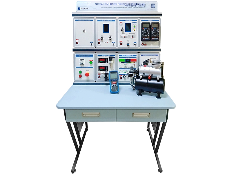 Лабораторный стенд представляет собой изделие настольного модульного исполнения.Комплект лабораторного оборудования "Промышленные датчики технологической информации. Физические величины" предназначен для проведения лабораторно-практических занятий по направлению "Электронные промышленные устройства и датчики", обеспечивает изучение промышленных датчиков (термостат, термопара, терморезистор, датчики освещенности и цвета), датчиков давления. Лабораторные эксперименты направлены на снятие статических, рабочих и частотных характеристик датчиков, изучение их устройства и принципа работы.