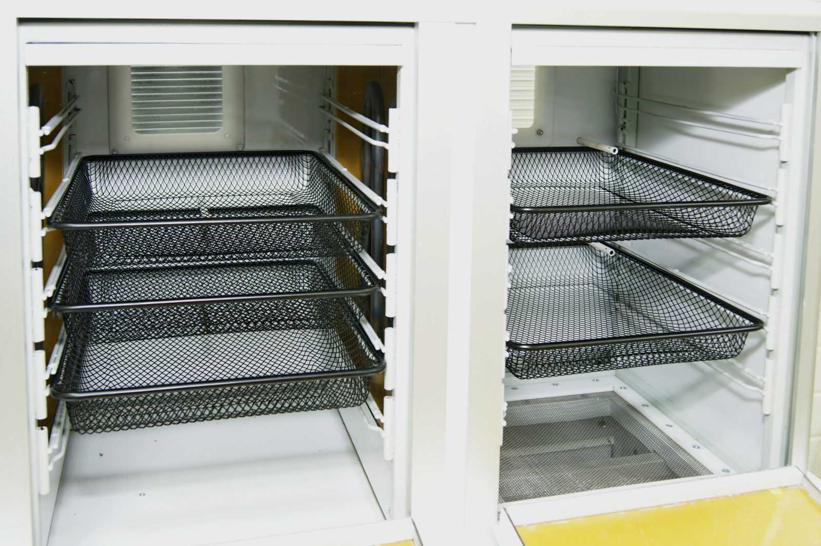 Наличие 5 сетчатых поддонов для сушки исследуемых образцов (4 выдвижных, 1 съемный);