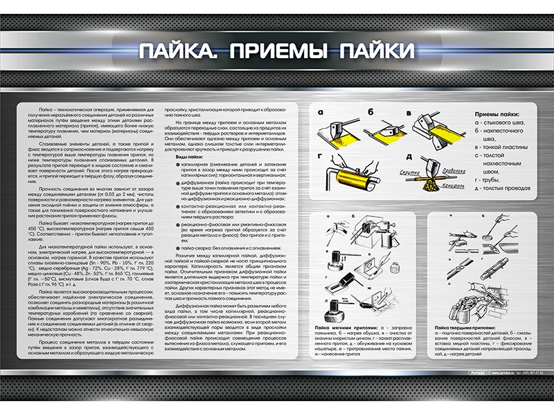 Стенд представляет собой панель, на которой изображены приемы пайки.