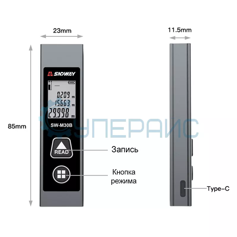 Лазерный дальномер SNDWAY SW-M30B — это высокоточный прибор для измерения расстояний, площади и объёма. Он помогает проводить точные измерения на стройплощадке, открытой местности или внутри помещений.