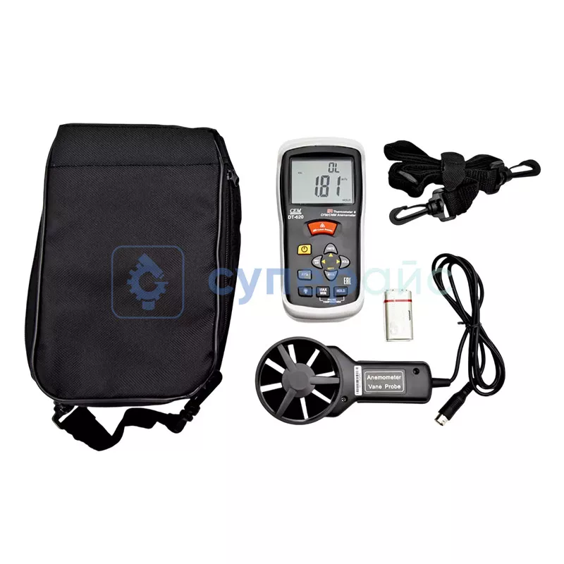 Комплектация | анемометр CEM DT-620 – 1 шт батарея типа "Крона" – 1 шт ремешок – 1 шт зонд-крыльчатка – 1 шт чехол – 1 шт руководство пользователя – 1 шт |