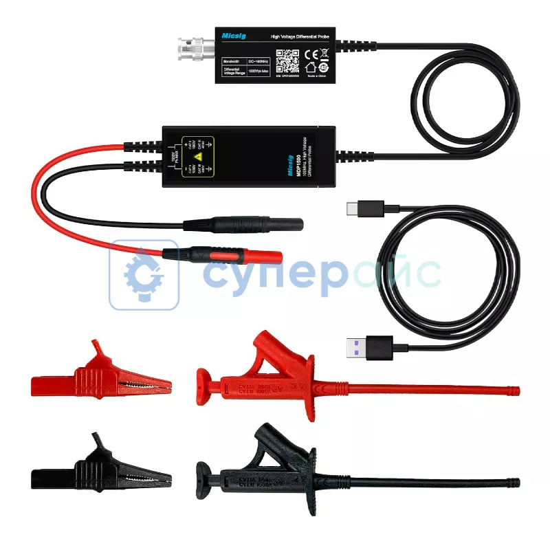 Комплектация | дифференциальный пробник Micsig DP10013 – 1 шт USB кабель - 1 шт зажимы-крокодилы - 2 шт зажимы-крючки - 2 шт щупы - 2 шт кейс для хранения - 1 шт |