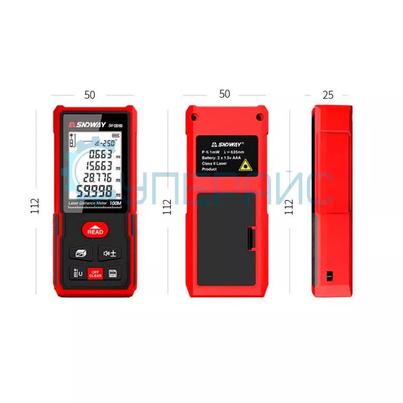 6. краткое нажатие отчищает экран от предыдущих замеров, скидывает выбранные функции; при долгом нажатии выключает дальномер