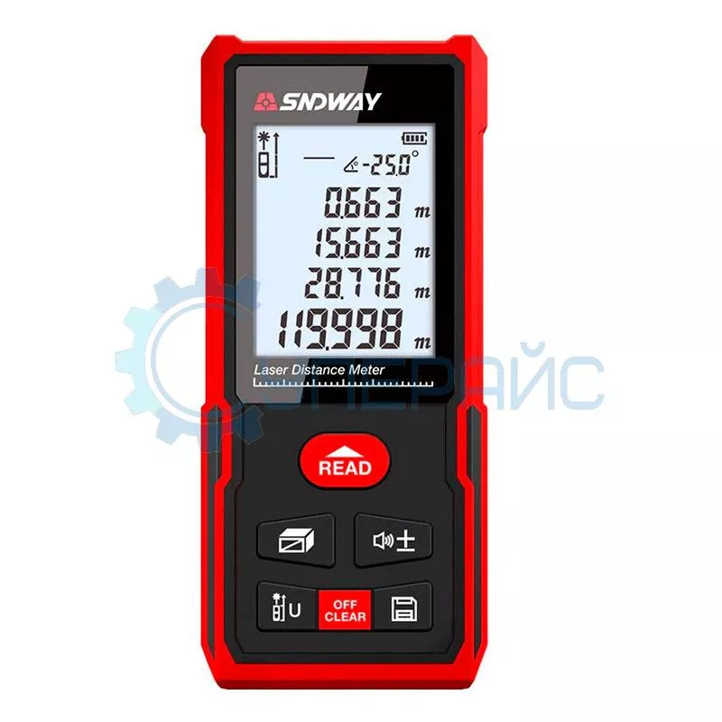 6. краткое нажатие отчищает экран от предыдущих замеров, скидывает выбранные функции; при долгом нажатии выключает дальномер
