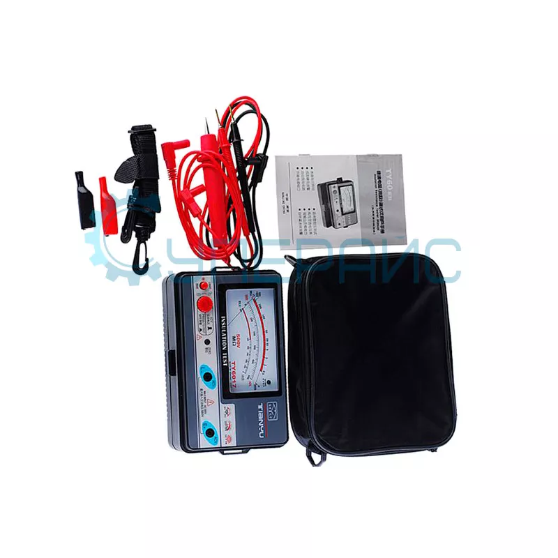 тестовый провод красный - 1 шт тестовый провод чёрный - 1 шт зажим типа «крокодил» красный - 1 шт зажим типа «крокодил» чёрный - 1 шт сумка для мегаомметра - 1 шт |
