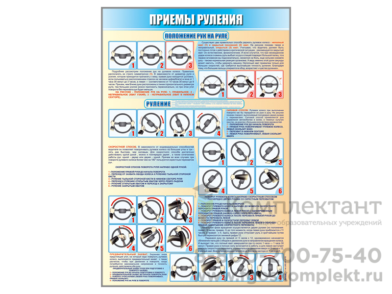 Стенд представляет собой информационную панель, на которой схематично изображены приемы руления при управлении транспортным средством.
