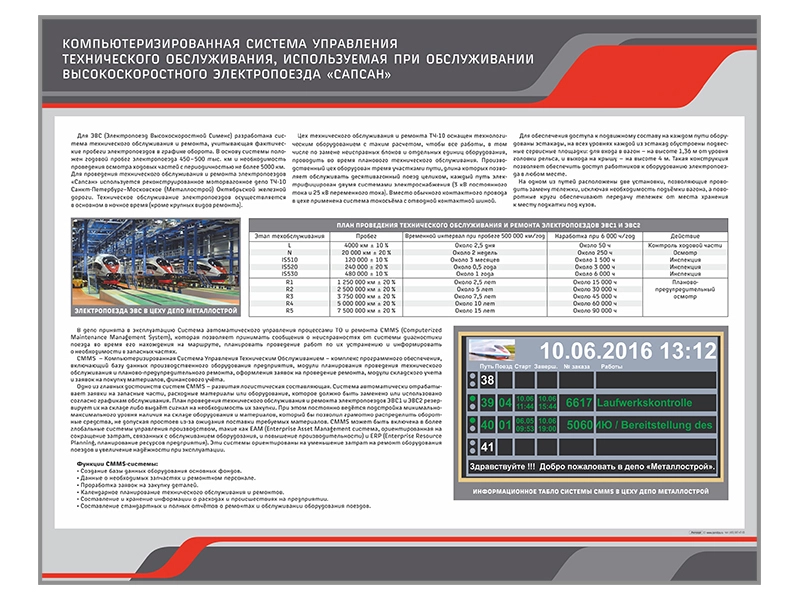 Стенд "Компьютеризированная система управления технического обслуживания, используемая при обслуживании высокоскоростного электропоезда "Сапсан"
