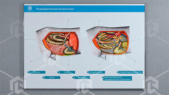 Светодинамический стенд-планшет предназначен для получения знаний об устройстве пищеварительной системы различных сельскохозяйственных животных.