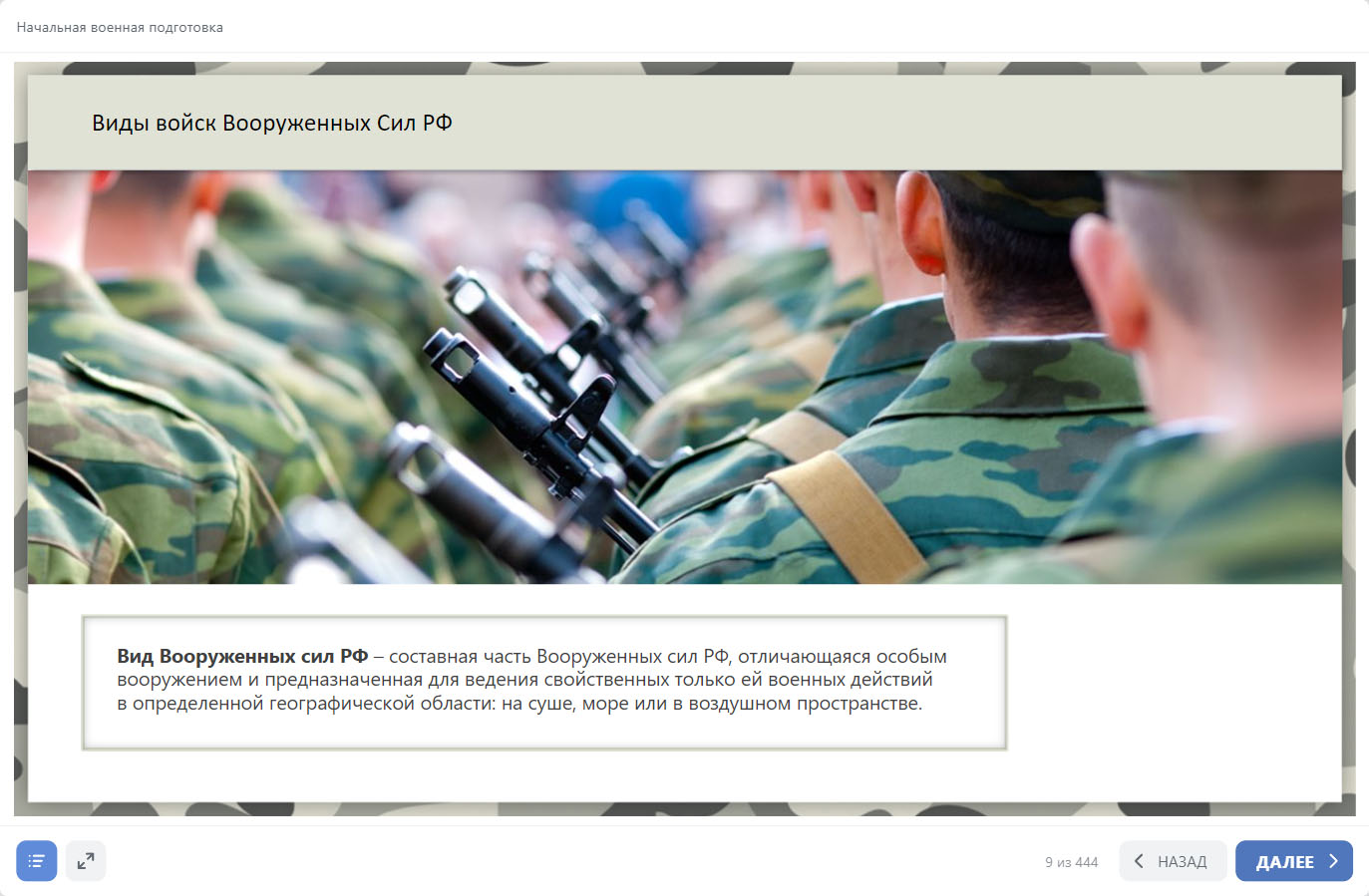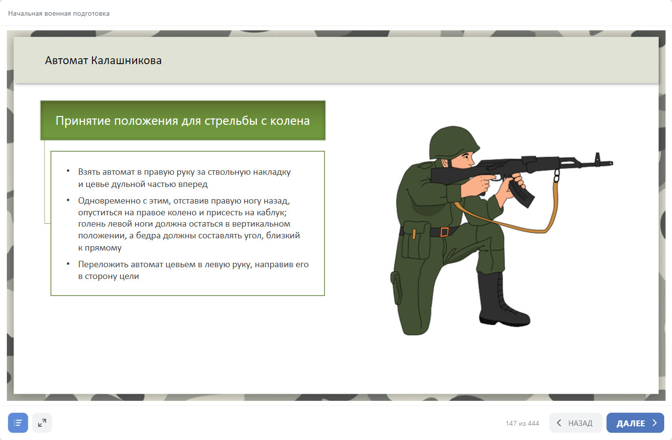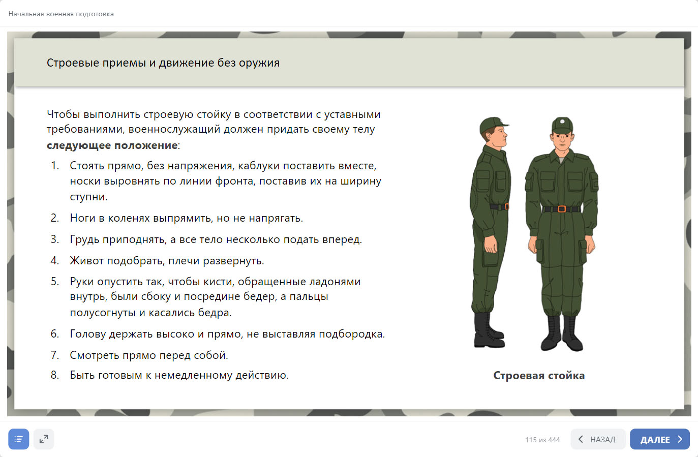 В основе материалов курса «Начальная военная подготовка» – актуальная база нормативных документов, касающихся прохождения военной службы, а также образовательные стандарты нового поколения.