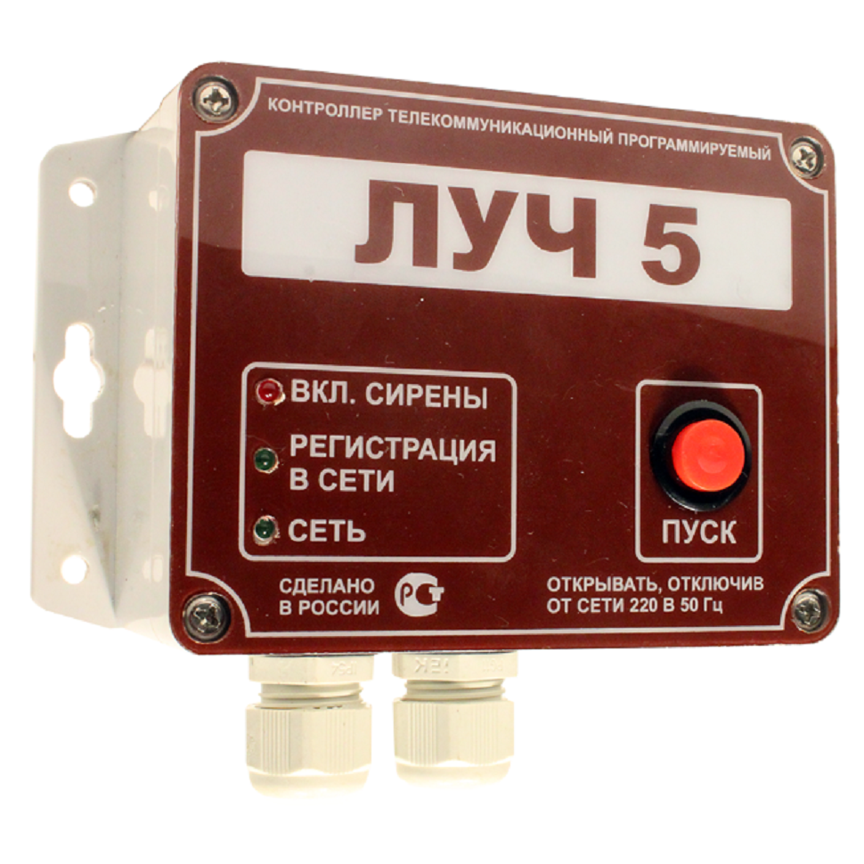 Контроллер предназначен для управления сиренами типа С - 40, С - 28 по каналам GSM связи или в ручном режиме. «Луч 5» выполнен в виде отдельного блока со степенью защиты от попадания пыли и влаги по ГОСТ 14254-96 (IP 54), обеспечивает непрерывную круглосуточную работу при температуре от -40 о С до +55о С. Питание контроллера должно осуществляться от сети переменного тока напряжением220 В +-10%. Габаритные размеры не более 145х115х60 мм. Масса не более 1 кг.