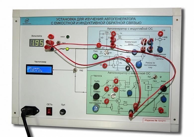 Предназначен для изучения принципов работы автогенераторов с емкостной и индуктивной обратной связью и позволяет выполнять лабораторные работы.