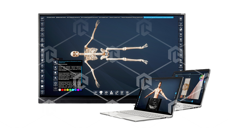 Специализированная версия комплекса с облегченным аппаратным обеспечениеми упрощенной версией ПО без поддержки сетевых функций и визуализации объемныхданных КТ-МРТ. Также снижены системные требования. Состав комплектацииподбирается индивидуально и реализуется только для установки в учебныезаведения начального уровня или в спецучреждения. Комплекс входит в Единый реестр российского ПО. Виртуальный учебный комплекс предназначен для подробного изучения анатомии человека с помощью трёхмерной графики и анимации. Программа воспроизводит всю анатомию человека в одной трехмерной сцене. Это позволяет увидеть взаимное расположение органов и изучить их внутренне строение. Данное программное обеспечение предназначено для работы в настольном режиме или на интерактивной доске в условиях аудитории. В программном комплексе присутствует визуальная дифференциация, а также гибкие средства для отделения необходимых объектов, для более подробного изучения последующим принципам: по гистологическому принципу; по отношению к частям тела; по принадлежности к определенной системе; по слоям, от внешнего к внутренним. Режим просмотра с возможностью взаимодействия с частями модели на экране (touch); Режим изучения патологической анатомии на примерах органов, а также сравнение со здоровым. Функция просмотра подробных моделей органов и систем человека с анимациями и аннотацией.Программное обеспечение поддерживает следующие режимы работы: