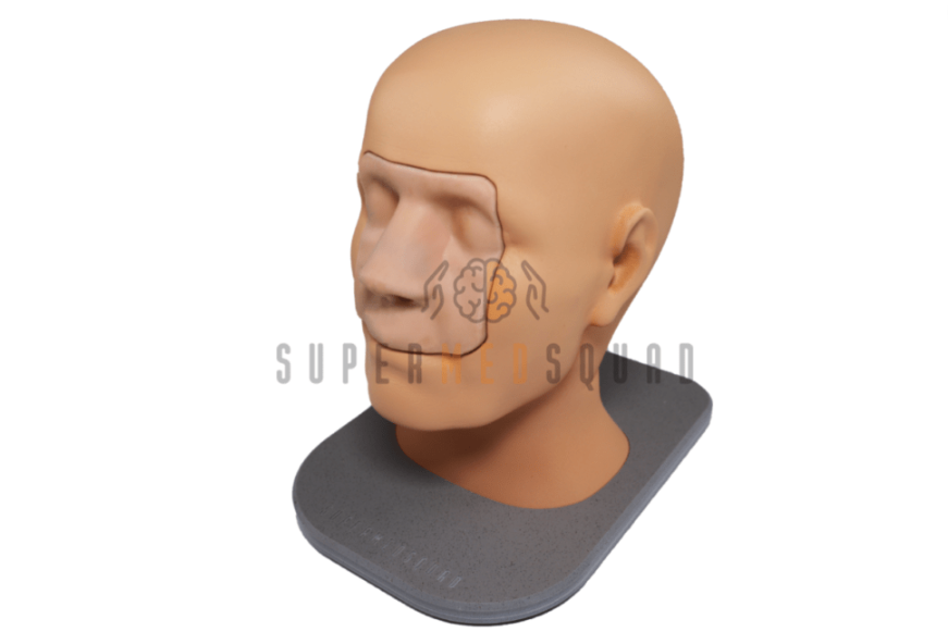 • Тренажер представлен в виде имитации головы человека на подставке с углублением под силиконовую вставку для эндоскопии носа