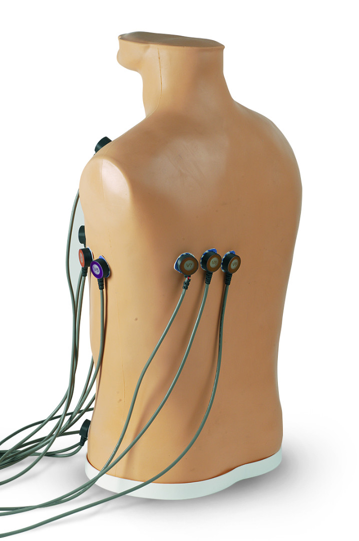 • на фантоме нет сигналов ЭКГ, поэтому он не предназначен для имитации ритмов или дефибрилляции