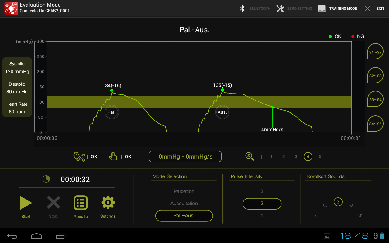 - аускультация тонов Короткова на плечевой артерии реальным стетоскопом