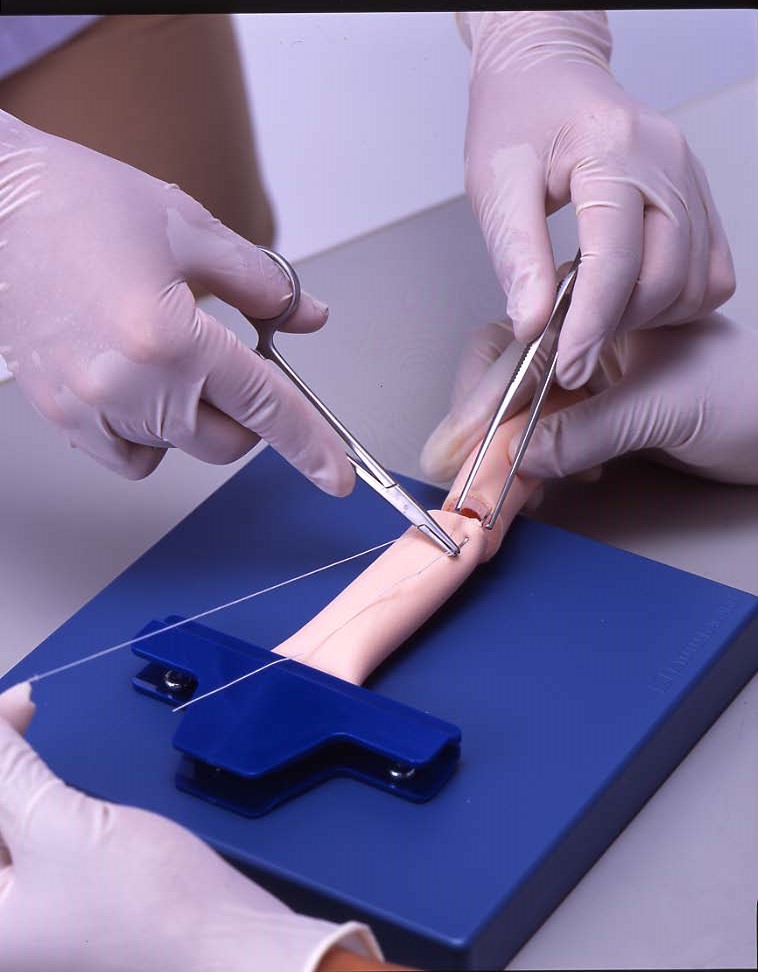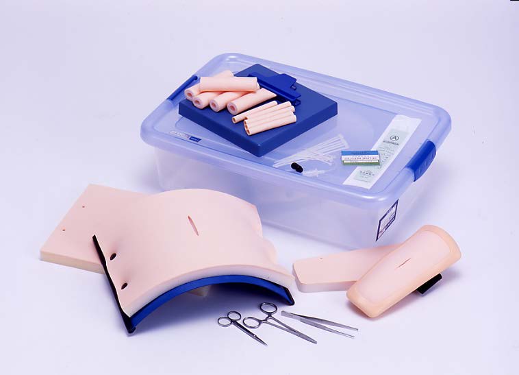 • набор включает комплект необходимых для отработки навыков наложения швов хирургических инструментов и шовного материала:
