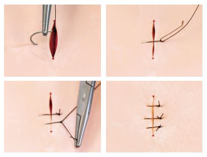 - набор имитированных кожных лоскутов с нанесенным разрезом для наложения трёх узловых швов