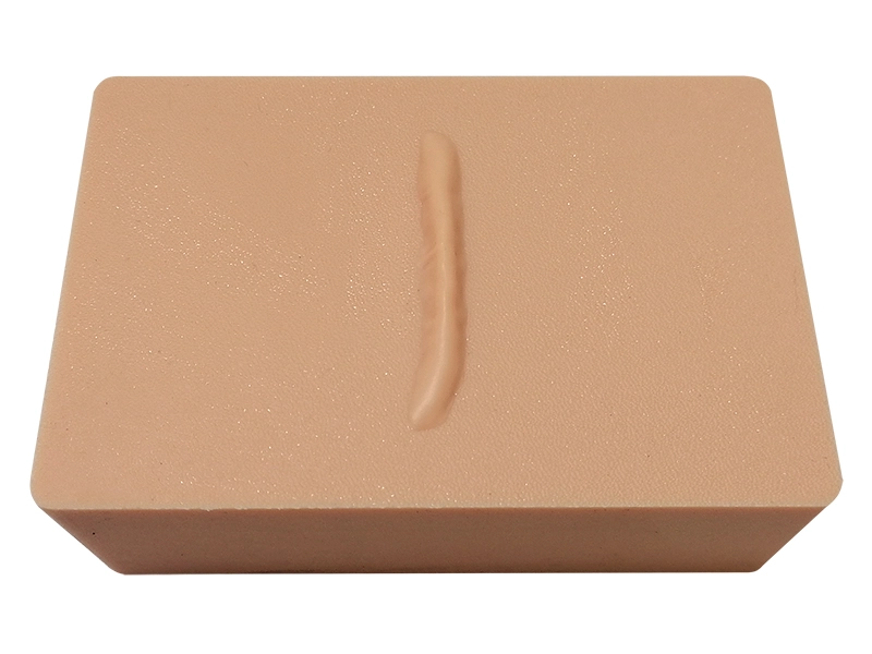 Тренажер представляет прямоугольный модуль, имитирующий участок кожного покрова, на котором расположен рубец.