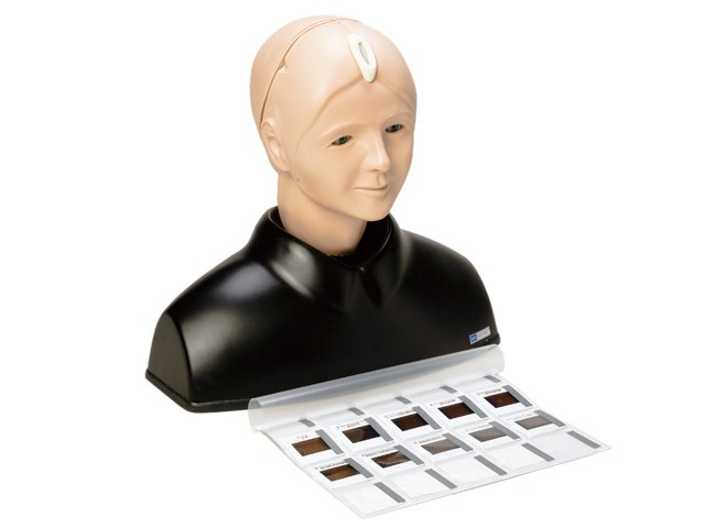• покрытие модели головы изготовлено из эластичного материала, по внешнему виду напоминающего кожу человека