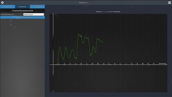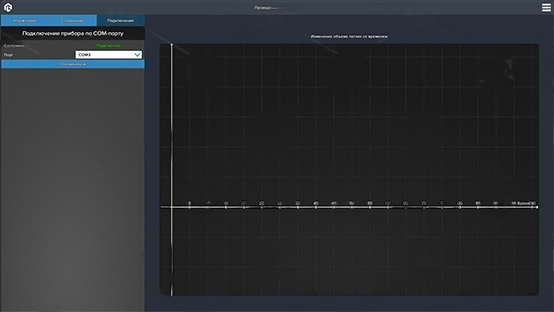 Также комплекс позволяет произвести комплекс спирометрических измерений с помощью цифрового спирометра (подключаемого к ПК) и сохранять полученные данные в файл, ассоциированный с произведенными измерениями дыхательных движений.