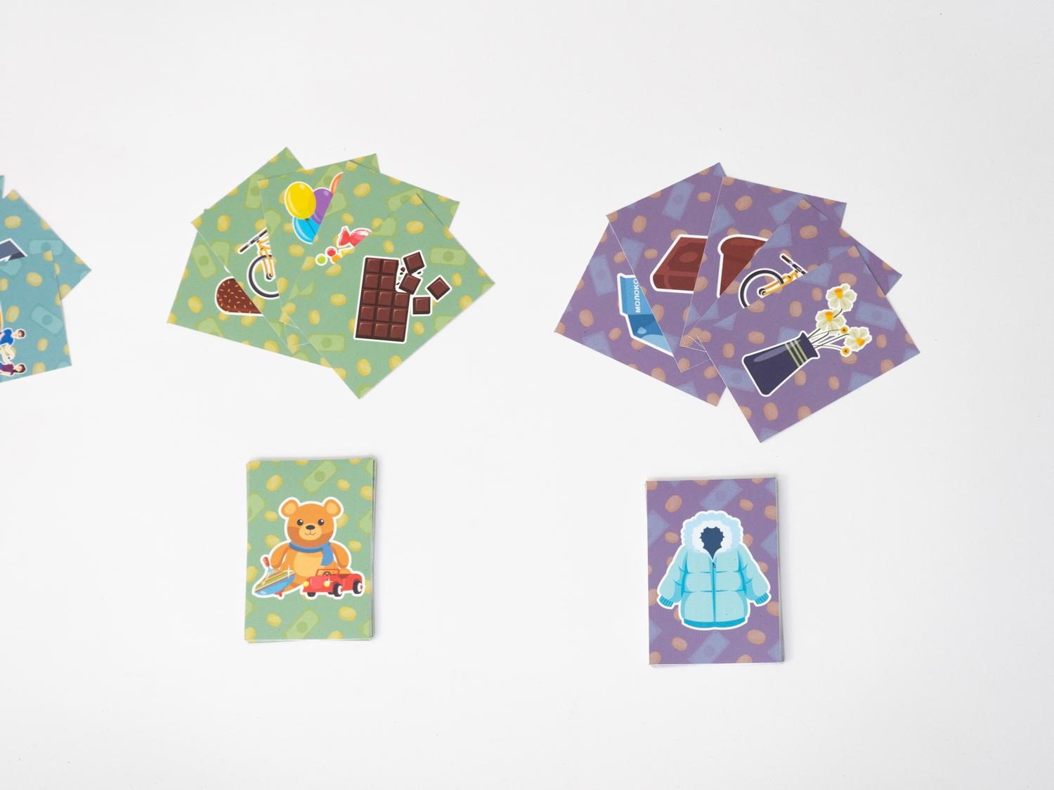 • Тематические карточки: хочу/надо, дорого/дёшево, расходы/доходы, можно купить/нельзя
