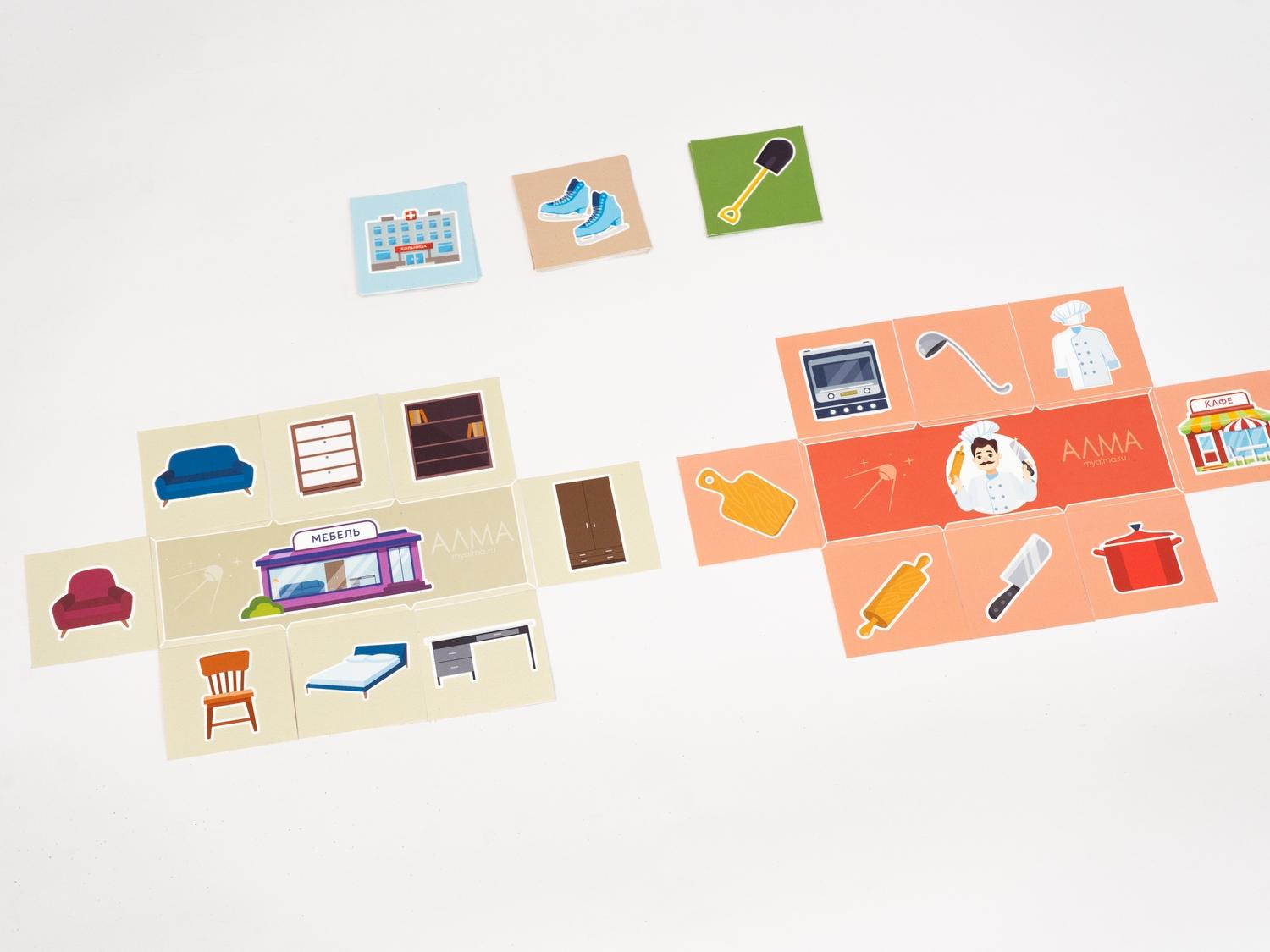• Тематические карточки для игры «Лото»: магазины и товары, профессии и инструментарий