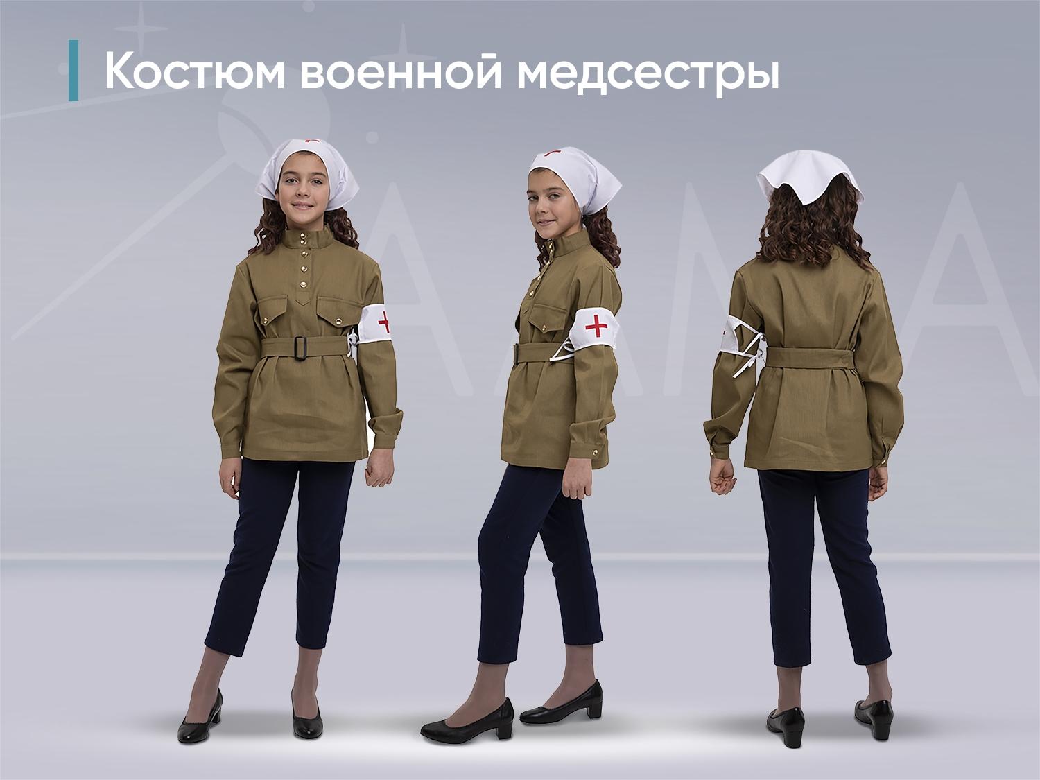 3. Военная медсестра. Размер: 104-110,116-122,128-134,140-146,152-158. Цвет: хаки.