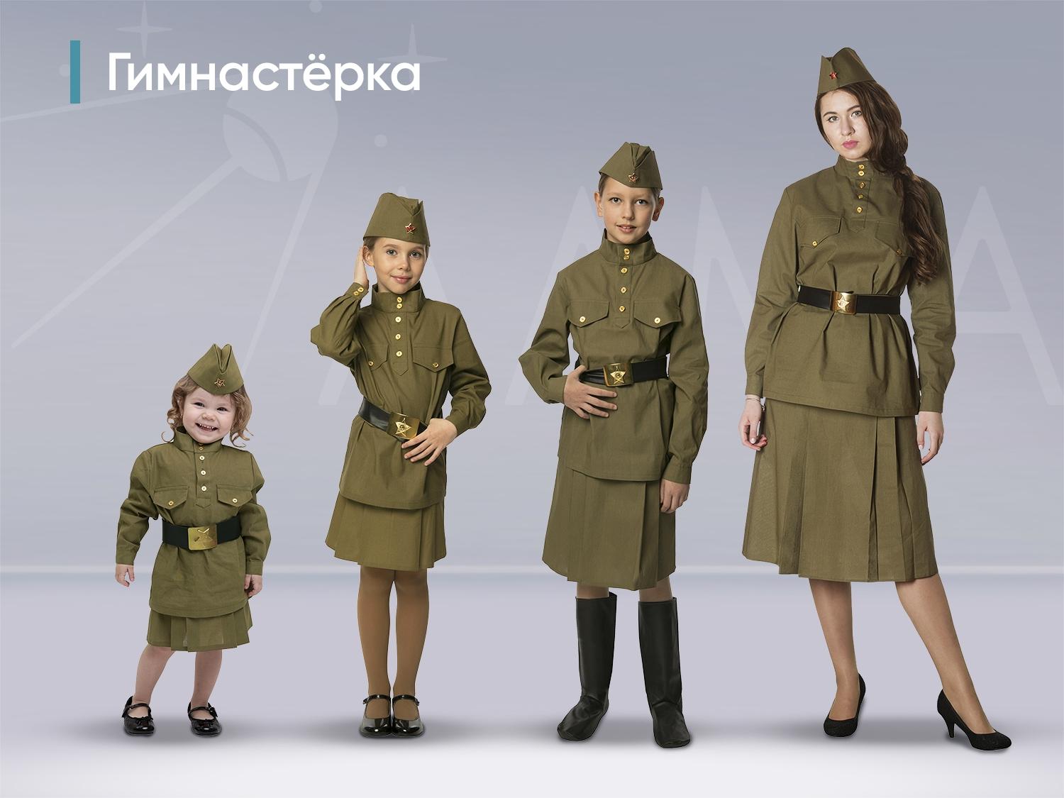 Военная форма для девочек для организации парадов, театрализованных военно-патриотических постановок. Предлагаем полные комплекты военной формы, и по отдельности: гимнастёрки, юбки, пилотки, сапоги, вещмешки, плащи т.д. Все изделия отлично садятся на детские и взрослые фигуры и не сковывают движения. Одежда выполнена по лекалам времен ВОВ.