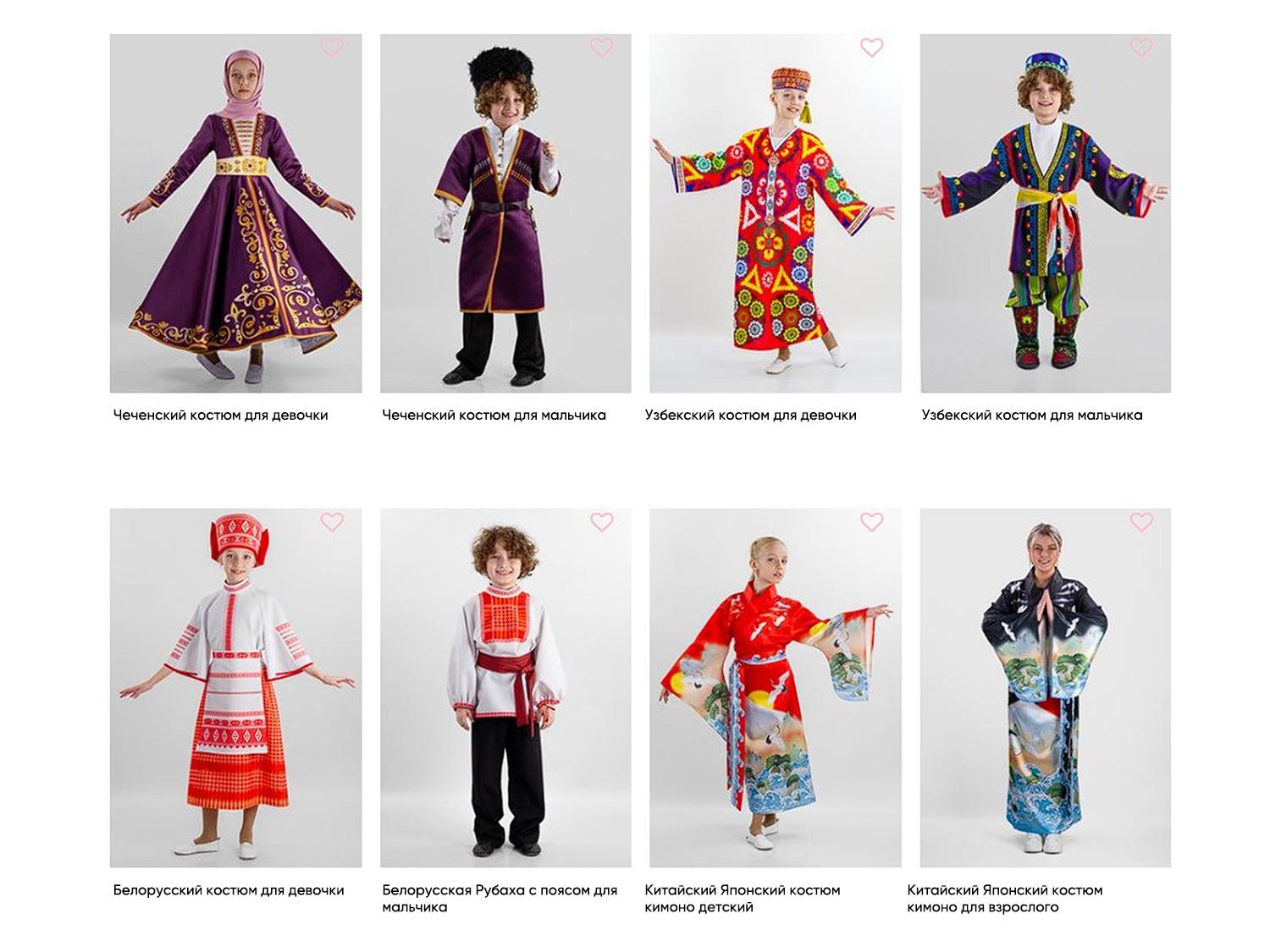 В линейке национальных нарядов представлены разнообразные варианты для детей и взрослых. Они выполнены с учетом традиций, поэтому реалистичны и соответствуют образу. Использовать такие костюмы можно для детских садов и общеобразовательных школ – например, для организации праздничных постановок или уроков патриотизма.