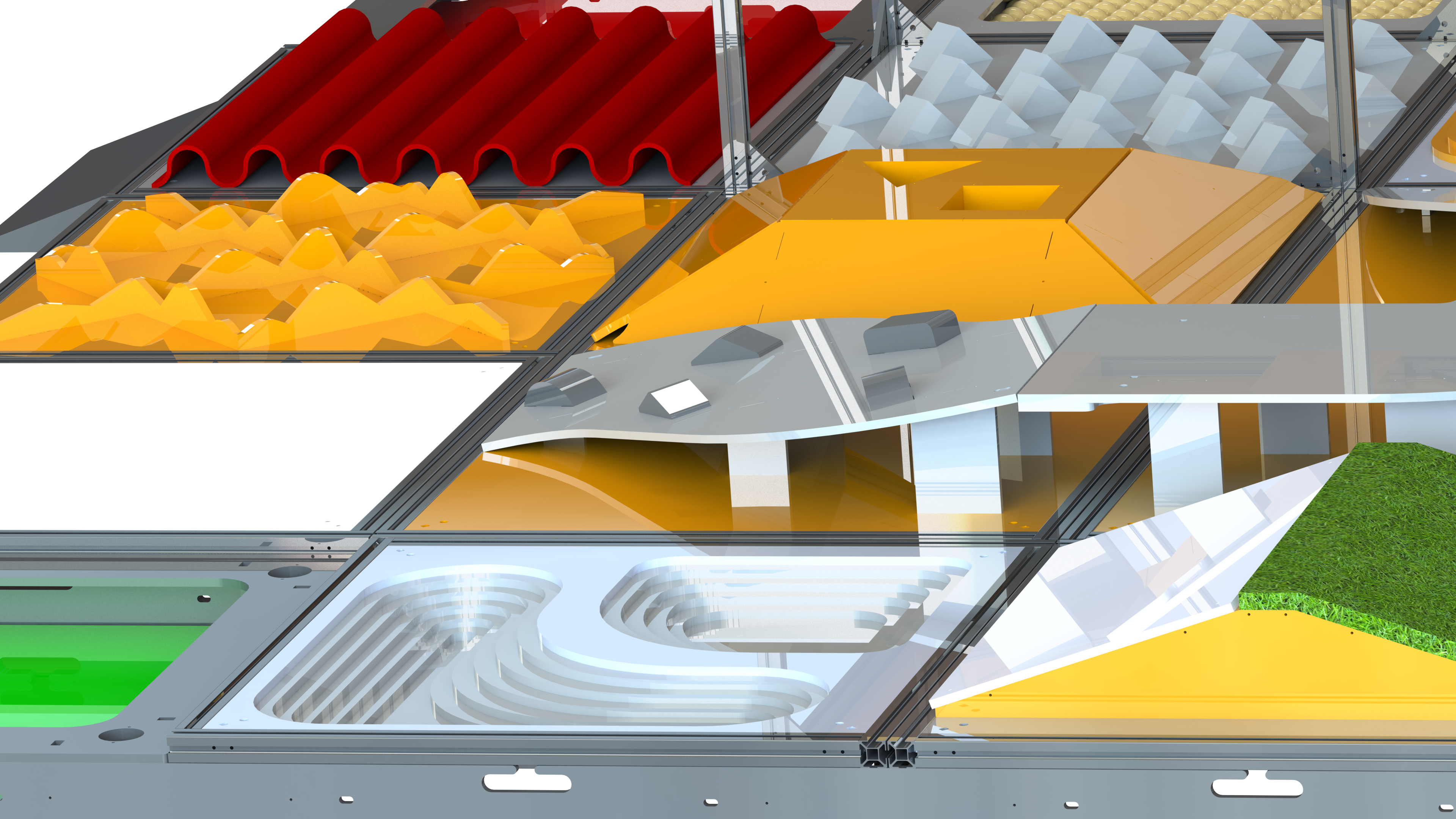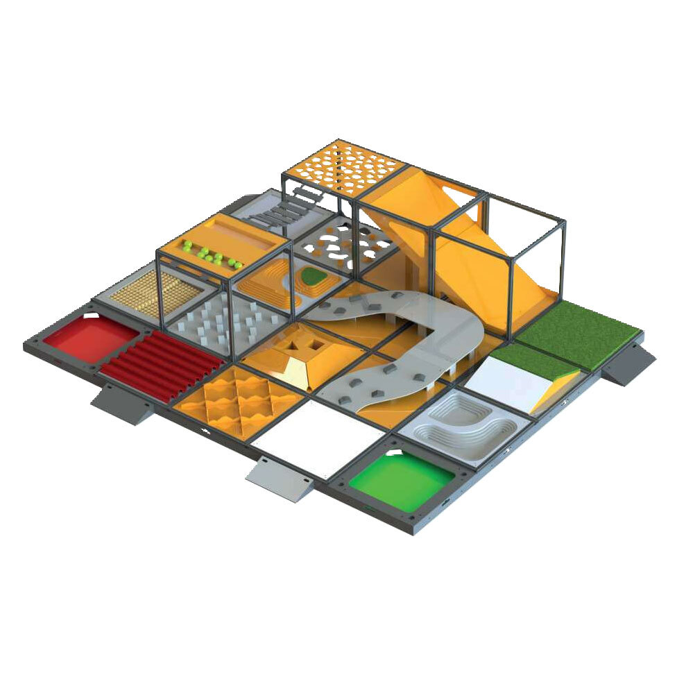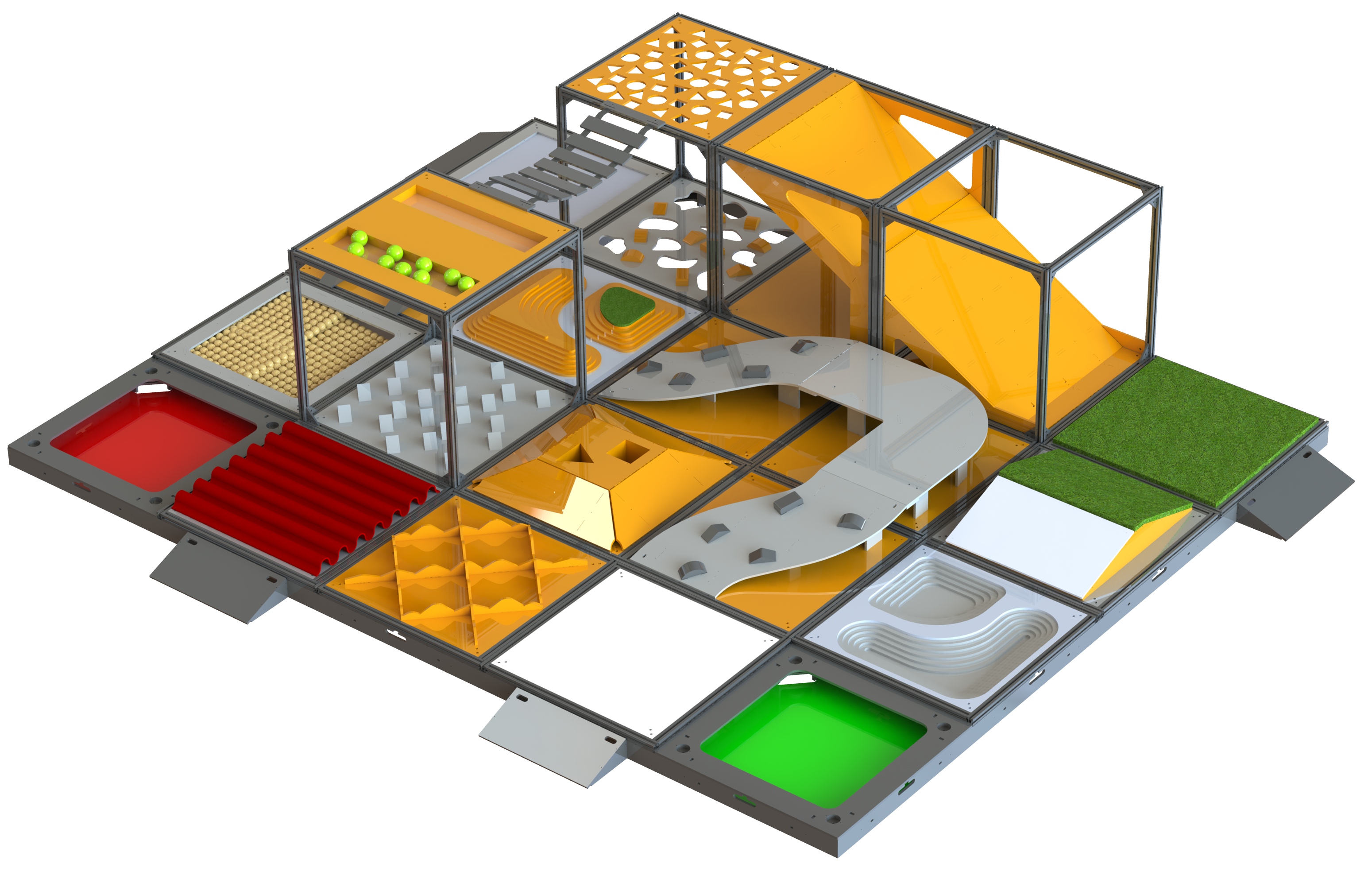 Испытательный полигон «РТК» представляет собой реконфигурируемую полосу препятствий, составными элементами которой являются 20 различных ячеек с испытаниями и заданиями, преодоление или выполнение которых позволяет оценить возможности мобильных роботов.