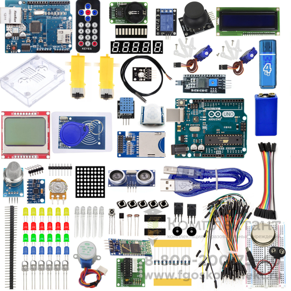 1х USB флэш накопитель с ПО, библиотеками и скетчами