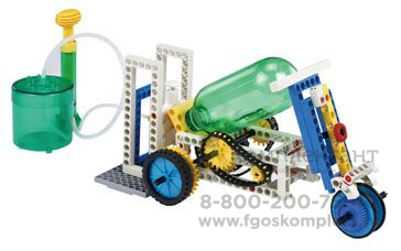 Основной акцент в конструктореGigo (Гиго) "Энергия воды" сделан на проведение серии научно-познавательных экспериментов спомощью гидропневматического редуктора.