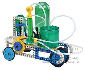 Готовые модели – не просто подобие вертолета, мотоцикла или мельницы. Это действующие механизмы. Они работают за счет гидропневматики (энергии воды и воздуха). С помощью насоса вода из накопителя попадает в специальную емкость. Опуская рычаг переключателя, вы отправляете воду на шестеренки – они начинают вращаться и приводят в движение колеса машины.