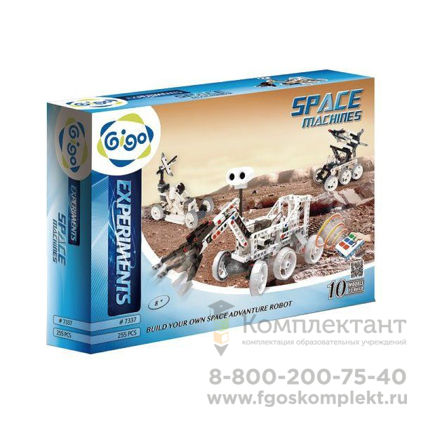 Из деталей конструктора "Космические машины" от Gigo ребенок может собрать десять различных моделей по схемам сборки. Модели управляются с помощью пульта дистанционного управления, который имеет четыре независимых канала и благодаря этому дети могут играть вместе с собранными моделями. Требуется 6 AAA / lr03 батареи в набор не включены.