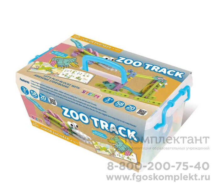 Набор «Юный инженер – Мини-зоопарк» упакован в прозрачный пластиковый ящик с крышкой и боковыми ручками для удобства переноски.