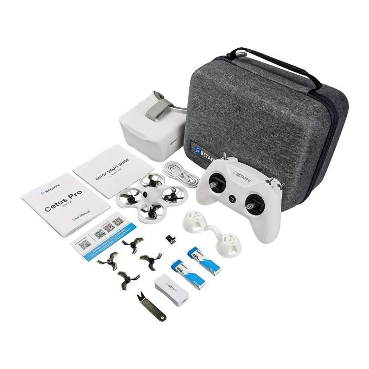 В комплект входит мощный и манёвренный дрон Cetus Pro, оборудованный полётным контроллером Lite 1-2S Pro с регулятором оборотов поддерживающим 12 А, с моторами 1102 18000KV и 40-миллиметровыми 3-лопастными пропеллерами.