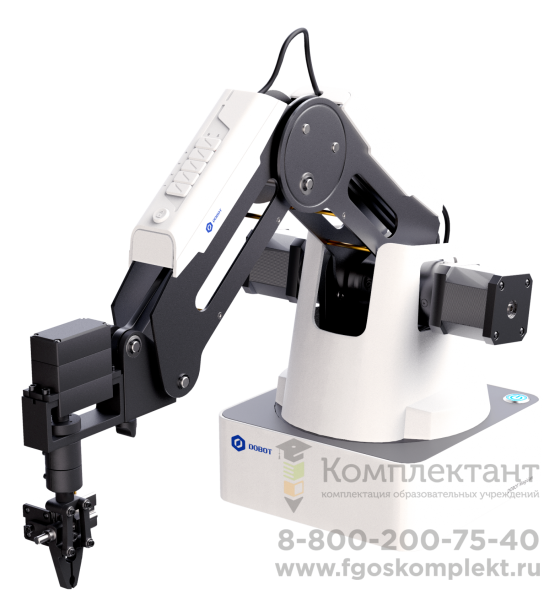 Образовательный комплект содержит учебный манипулятор DOBOT Magician , представляющий собой многофункциональный настольный манипулятор с комплектом сменных рабочих инструментов, благодаря которым DOBOT Magician обладает возможностью перемещения предметов, трехмерной печати, лазерной гравировки, письма и рисования.