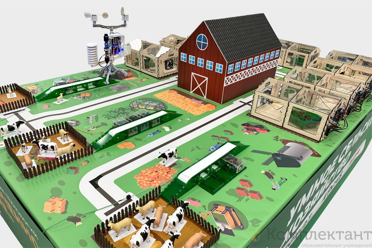 Используемые образовательные наборы моделируют реальные решения прогрессивных систем сельского хозяйства. Умные теплицы играют ключевую роль в этой концепции, обеспечивая оптимальные условия роста растений благодаря автоматизации освещения, полива, вентиляции и температурного режима. Для животноводства используются RFID-метки, позволяющие отслеживать перемещения животных. Роботы-доставщики помогают оперативно транспортировать урожай и удобрения, снижая нагрузку на работников и ускоряя процессы обработки полей.
