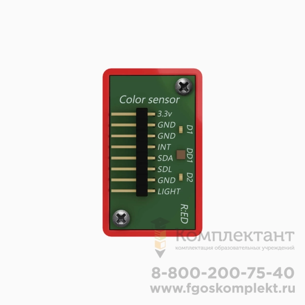 Датчик цвета — это устройство, необходимое для того, чтобы робот мог определить цвет и яркость света. Датчик определят диапазон 3-х цветов: красный, зеленый, синий.