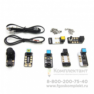 1 x Me Light Sensor (датчик освещенности) 1 x Me PIR Motion Sensor (датчик движения) 1 x Me Temperature Sensor - Waterproof (DS18B20) (датчик температуры, водонепроницаемый) 1 x Me RGB LED (светодиод) 1 x Me 7-Segment display - Red (7-сегментный дисплей с контроллером) 1 x Me Joystick (джойстик) 1 x Me Potentiometer (переменный резистор) 1 x Me RJ25 Adapter (адаптер RJ25) 2 x 6P6C RJ25 кабель - 20cm 1 x 6P6C RJ25 кабель - 35cm 10 x винт с круглой шляпкой M4x8 10 x гайка M4 |
