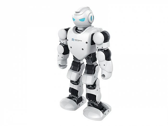 Интерактивный робот с искусственным интеллектом словно сошел с экранов телевизоров, став воплощением задумок авторов фантастических фильмов. Разумная машина наделена искусственным интеллектом, она станет не просто игрушкой, а настоящим членом вашей семьи. Она не только обладает удивительной технологией взаимодействия с человеком, но и способна обучаться. Этот робот, конечно, не приготовит кофе и не помоет посуду в доме, но станет забавным другом, с которым каждое занятие станет увлекательным развлечением. Гуманоид не только обладает привлекательной внешностью, но и находит общий язык как с детьми, так и со взрослыми. Программное обеспечение позволяет легко изменять его поведение, а при скачивании дополнений с официального сайта робота можно усовершенствовать, научив его новым движением или речи. Умная машина с внешностью футуристических роботов превосходно имитирует движения человека. Это достигается благодаря 16 запатентованным сервоприводам, каждый из которых используется в роли сустава и отвечает за движение каждой конечности. Так, робот может свободно жестикулировать, ходить, танцевать, играть в футбол и демонстрировать боевые стойки и даже выполнять акробатические трюки. Для изготовления интерактивного робота были использованы только высококачественные материалы - ABS-пластик и алюминий. Конструкция собрана таким образом, что система полностью защищена от замыканий. Все соединения скрывает прочный корпус, поэтому во время эксплуатации исключается вероятность появления царапин и удара током. Кроме того, предустановленные световые эффекты делают робота более ярким и дарят множество положительных эмоций взрослым и детям. Задавать команды разумной машине можно сидя на диване и держа в руках смартфон или планшет. Bluetooth-соединение дает возможность удобно управлять гуманоидом на расстоянии до 10 метров. Модель совместима с устройствами, функционирующими на операционных системах с Android, IOS, Windows и Mac OS. Установленная на вашем гаджете программа имеет интуитивно понятный интерфейс, который достаточно легко освоить. Кроме того, бесплатное программное обеспечение регулярно обновляется. Что дает возможность пользоваться самой последней версией. Загрузив музыку на внутреннюю память устройства и обучив робота новым движениям, он произведет незабываемое впечатление на любой вечеринке. С тщательно проработанной системой визуального программирования вы почувствуете себя настоящим гением создавать новые движения, изменять поведение и много другое. Благодаря установленной энергоемкой батарее, робот Ubtech Alpha 1PRO будет удивлять своими интерактивными способностями целый час без подзарядки. Восполнить ресурс батареи можно за минимальный промежуток времени, подключив умную машину к сети. Робот Ubtech Alpha 1PRO - воплотившаяся в реальность фантастика