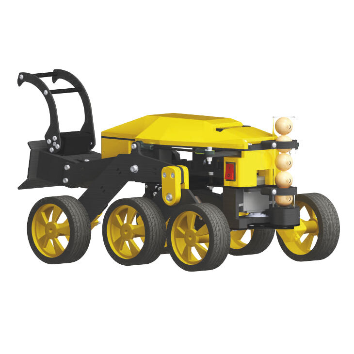 Hобототехнический конструктор на базе шестиколесного шасси. На робота установлено навесное оборудование - устройство имитации