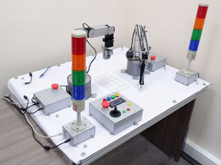 Учебный комплект для изучения манипуляционных роботов и промышленной автоматизации представляет собой учебно-лабораторный макет автоматизированной робототехнической ячейки или «умной фабрики», предназначенный для применения в общеобразовательных учреждениях, учреждениях СПО и ВУЗах, а также детских технопарках и других учебных заведений для преподавания основ робототехники и промышленной автоматизации.