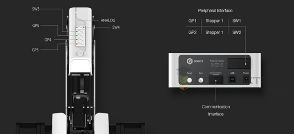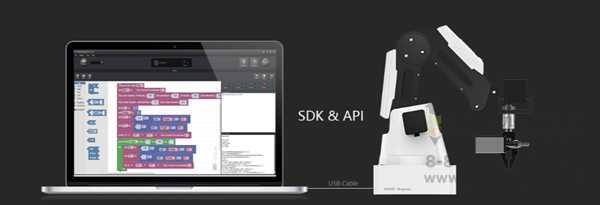 Управлять многофункциональным роботом можно с помощью компьютера, смартфона или планшета по Bluetooth, WIFI или используя джойстик. Визуальный интерфейс программного обеспечения DobotStudio (Windows, Linux CNC, Mac), работающий по принципу plug-and-play (нажать и перетащить), настолько прост, что справиться с управлением робота может даже начинающий пользователь.