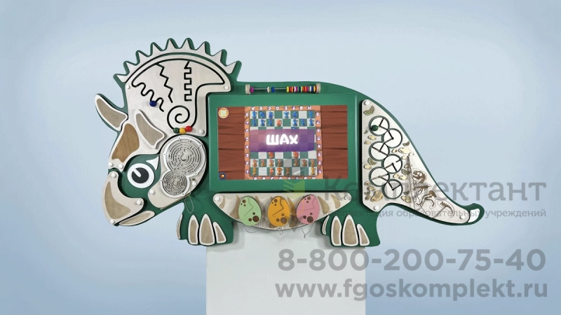 Все дети любят динозавров, в них есть что-то таинственное, древнее, фантастическое. Именно по этому мы разработали интерактивный бизиборд Динозавр Визи.